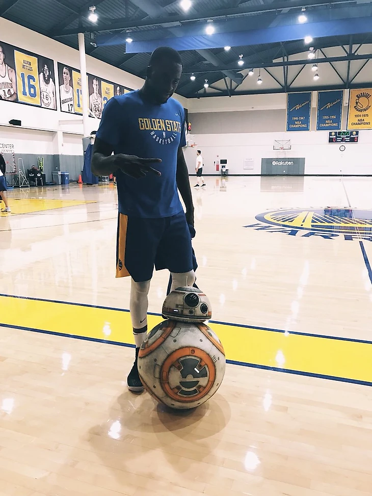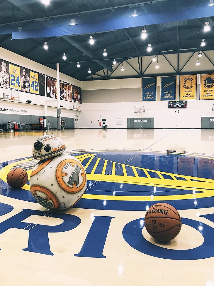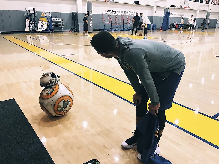 Очаровательный дройд из последних фильмов вселенной «Звездных войн» посетил тренировку «ГСВ». Игроки «Голден Стэйт» примут участие в фотосессии с BB-8, а сами фото, станут частью пиар кампании к выходу нового эпизода звездной саги.