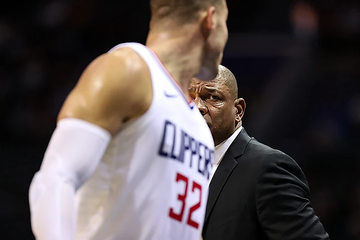 Док, кажется, начинает показывать свой реальный тренерский уровень. Кто-то обещал повальное движение мяча, но «Клипперс» в последней десятке по количеству передач. Понятно, что первый фактор накладывает отпечаток, но суть тотального перепаса как раз в том, что вам не нужны чистые разыгрывающие. Док же просто не пытается двигать мяч. Торнуэлл, которого обстоятельства отправили в старт, в студентах отдавал по 7 передач за игру, в «Клипперс» у него выходит меньше одной. Они не двигают мяч, они не придумали новых двоечек, они продолжают гонять этот двойной заслон наверху, который уже года три как не работает. И их ресурсы просто не позволяют постоянно гонять в тупые броски после заслона весь матч – Гриффин, Уильямс и Риверс это их лучшие скореры. Не тот ресурс, чтобы побеждать, не комбинируя.