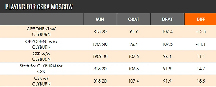 У Клайберна идеальное баскетбольное тело, и практически во всех своих командах он помногу забивал. Но в ЦСКА он удивил тем, что стал, наконец, гораздо более эффективным игроком в атаке, прибавил в аспекте, где ему всегда отказывали – в дальних бросках, дал команде еще одну опцию для атаки один в один, более мощную, более ориентированную на силовые проходы.