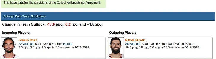 Миротич едет в Нью-Йорк в обмен на Жоакима Ноа, пик первого раунда 2018 (Никс), пик второго раунда 2018 (Чикаго).