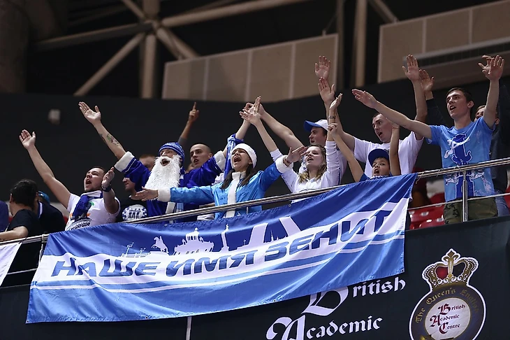 Не супергероями едиными! "Баскет-холл" полон развлечений для посетителей: от барбер-шопа до джазового концерта, от баскетбольных мячей до боёв маленьких роботов. Нас в атрибутике "Зенита" с грозным видом встретил талисман "Локомотива", но всё закончилось дружескими обнимашками, и это – лишь часть отличной атмосферы, которая царит в холле арены, то есть, ещё не доходя до основного места событий. Зрители подтягиваются на свои места ближе к старту матча, и здесь тоже никто не скучает, болеют громко и активно с самого начала. Мы тоже не отмалчиваться приехали! Хотя из Питера нас было всего трое, местные болельщики "Зенита" составили с нами компанию человек в пятнадцать, и особенно ярким их представителем был десятилетний Слава, который год назад очень полюбил наш клуб и вчера, не побоявшись и не постеснявшись взрослых фанатов, пришёл поддерживать команду вместе с нами. Слава крутой, будьте как Слава.