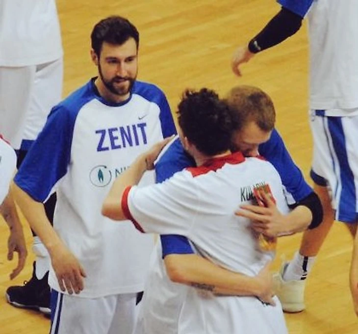 Нельзя не упомянуть о теплоте встречи между старыми друзьями, ведь часть игроков, которые противостояли друг другу на вчерашнем паркете, когда-то были напарниками в разных командах. Успелось запечатлеть небольшой фрагмент: