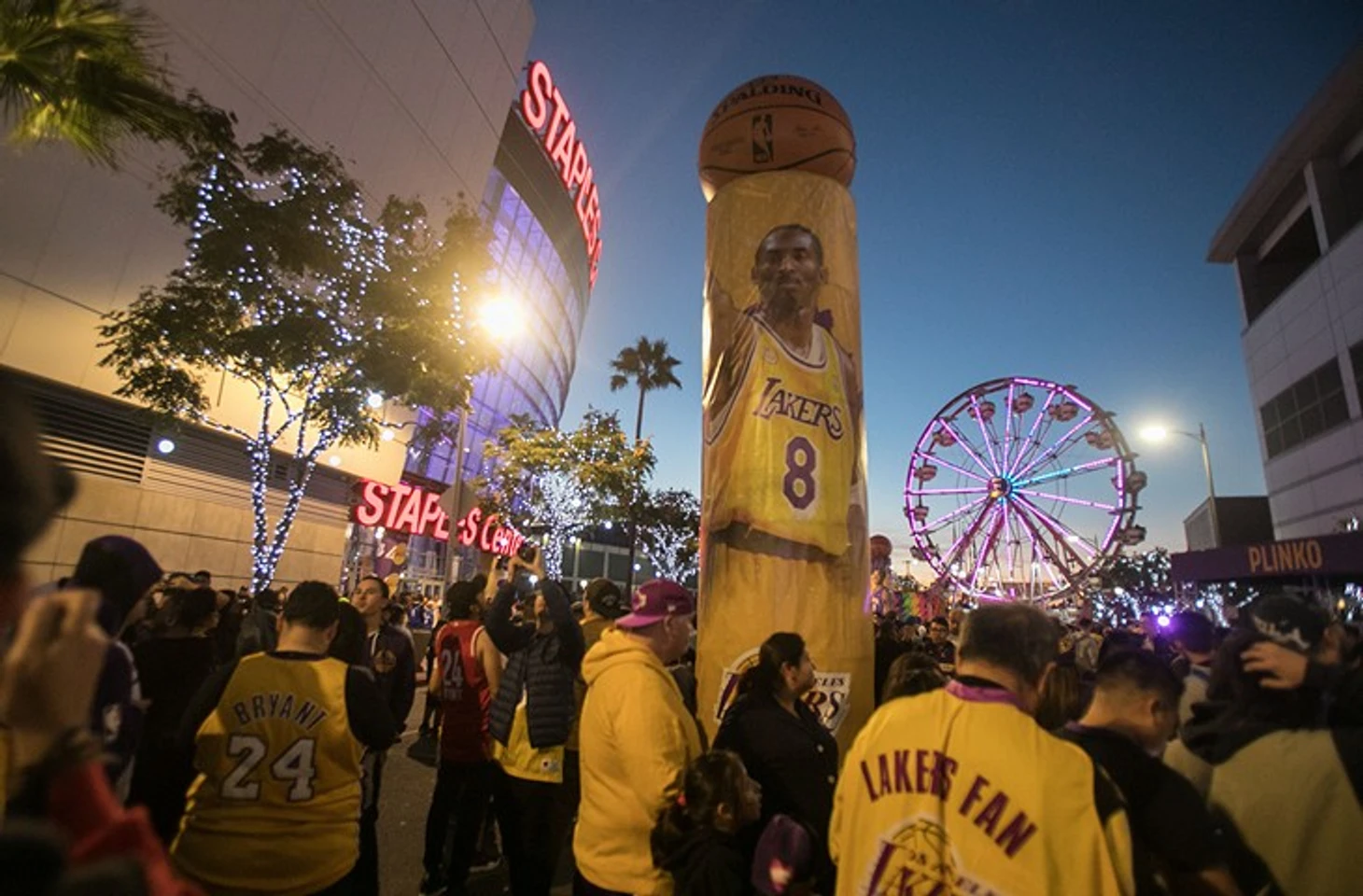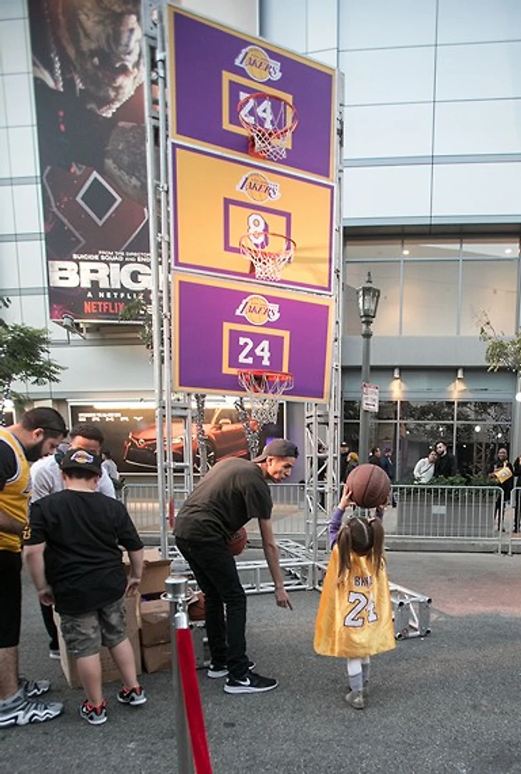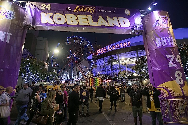 К матчу против «Уорриорз», на который и была назначена церемония в честь Кобе, перед ареной «Лейкерс» построили целый парк развлечений «Кобелэнд»: