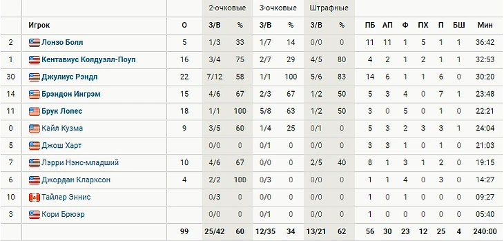 Кузма - 9/5/5/3/1 при 3 потерях за 24 минуты. Хорошо отыграл, старался больше обычного в защите, в нападении был вариативен. Кроме этого стал заметен прогресс Кайла в созидании, отдал несколько классных передач;