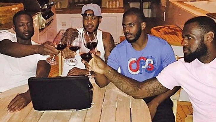 Вот вам дилемма: они взяли в аренду яхту и заказали еду для этой яхты, но пока они не подобрали вино, которое бы подходило к еде для этой яхты. Классическое определение проблемы «Первого мира» – дело происходит на Багамах в июле 2015-го. Леброн Джеймс, Кармело Энтони, Крис Пол и Дуэйн Уэйд должны определиться с выбором вина.