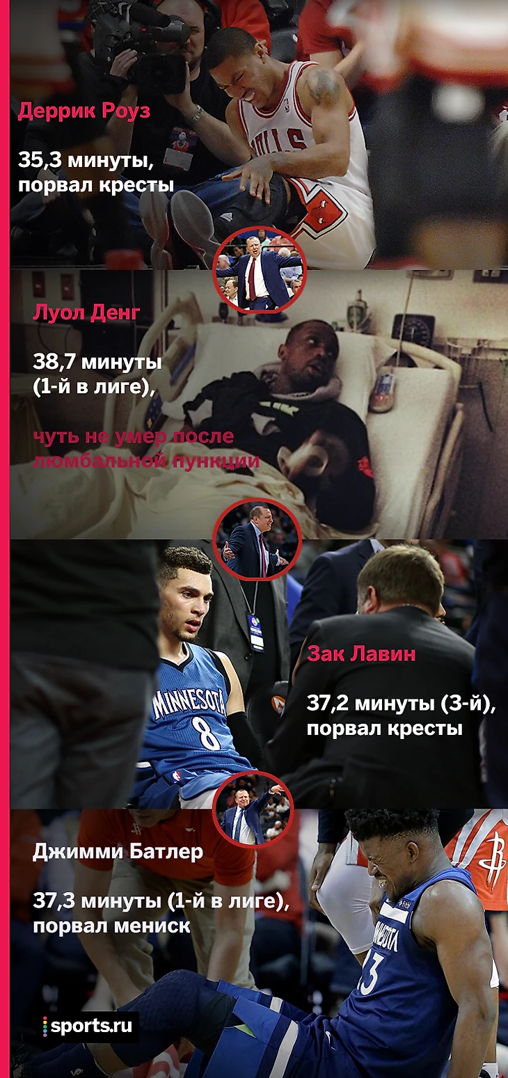 Тренер «Миннесоты» Том Тибодо славится тем, что играет усеченной ротацией, перегружает своих лидеров и не знает разницу между «мусорным временем» и минутами, когда происходит что-то действительно важное. Практика специалиста негативно отражалась на всех его игроках, за исключением двух молодых – Эндрю Уиггинса и Карла Энтони-Таунса.