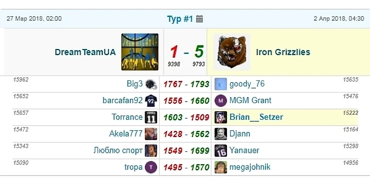 Регулярку отыграли средненько для себя, но надежно - обыграли все команды, не попавшие в итоге в плей-офф. Даже пошли разговоры, что Гризлики уже не те, но задачи феерить весь сезон и не было, главное подойти хорошо подготовленными к матчам на вылет. За неделю до конца регулярки нас ждал очень неприятный сюрприз - неожиданно пропал основатель команды Макс MGM Grant. Ждали его возвращения до последнего, а в плей-офф замены уже делать нельзя, поэтому пришлось доигрывать за него всей командой. Плей-офф мы прошли на одном дыхании, поставили хорошие составы сразу и укатали всех без вариантов: +700, +300 и +400 по сумме фо - вот такое большое преимущество в каждом из матчей. Особенно хочется отметить именно командную игру и тактику.