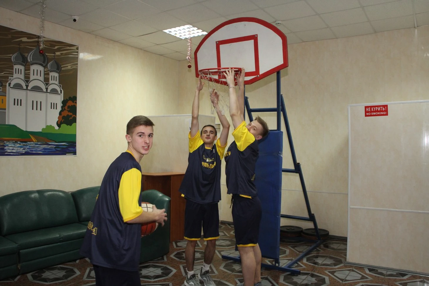 На нескольких площадках, оборудованных на первом и втором этажах кинотеатра, проходили баскетбольные конкурсы – зрители с азартом забрасывали мяч в кольцо, жонглировали баскетбольными мячами и выполняли по заданию игроков другие несложные упражнения. Дети с удовольствием играли а «офисный баскетбол» - на время бросали в пластиковую корзину для бумаги скомканные листы.