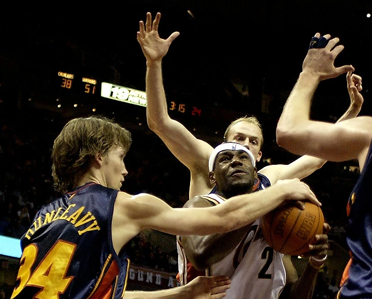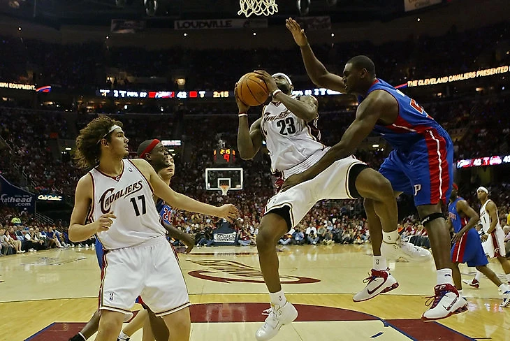 Тот «Кливленд» начал сочетать фирменную защиту Майка Брауна с построенной на нечеловеческом здоровье Леброна атакой. Над лысым тренером принято смеяться, но те «Кэвз» не были совсем уж идиотами – они шли на пятом месте в лиге по выброшенным трехочковым и на втором месте по проценту их реализации: Мо Уильямс, Буби Гибсон, Делонте Уэст, Саша Павлович давно ушли в небытие, но тогда поливали лучше всех в лиге.