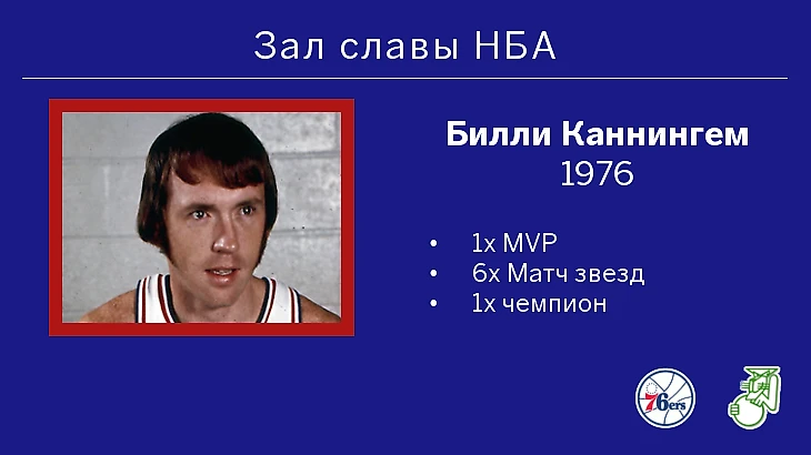 Форвард «Филадельфии Сиксерс» Билли Каннингем – в Зале славы НБА.
