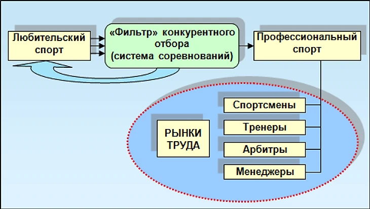 Важнейшей составной частью сферы физической культуры является профессиональный спорт, который представляет вершинную, наиболее продвинутую и коммерциализированную часть всей совокупности физкультурно-спортивных отношений. Большинство спортсменов-любителей хотели бы стать профессионалами, звездами большого спорта и действующими лицами большого бизнеса. Однако для попадания в профессиональный спорт одного желания недостаточно. И начинающим, и уже сложившимся спортсменам-непрофессионалам необходимо пройти горнило любительского спорта, где конкуренция весьма высока. И только самые способные и целеустремленные люди пробиваются сквозь сито жесткого отбора в элиту спорта – в когорту профессионалов.
