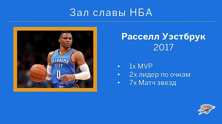 Защитник «Оклахома-Сити Тандер» Расселл Уэстбрук – в Зале славы НБА.