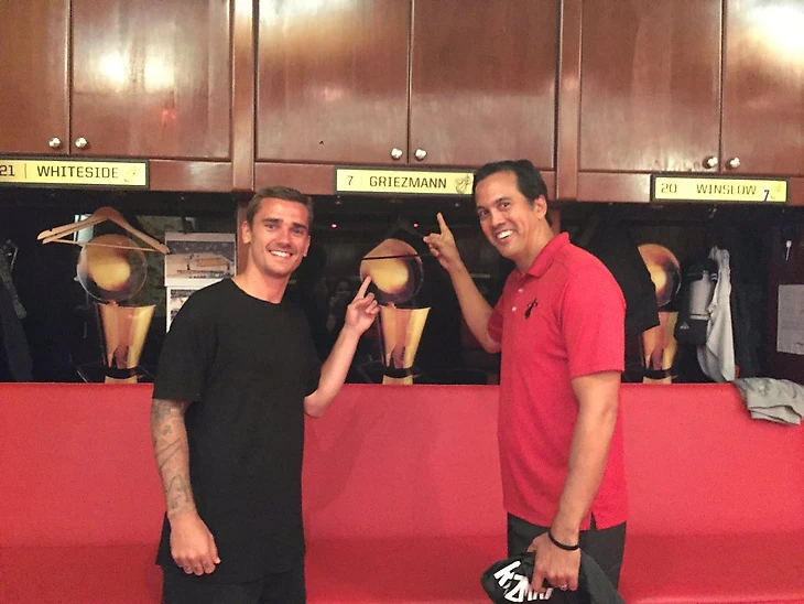 Антуан Гризманн большой фанат НБА и «Майами Хит». На днях француз заехал к ним в гости и потренировался с парнями. Сначала Антуан рассказал о своей мечте, сфотографировавшись с джерси команды: