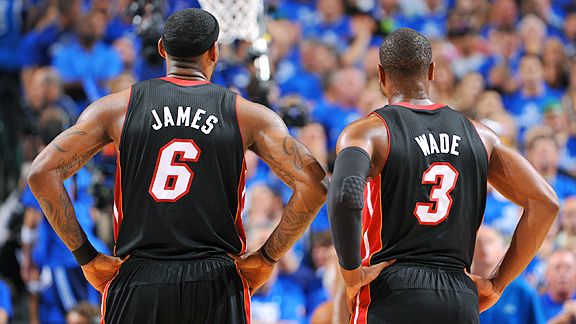 Больше всего вопросов не к скамейке запасных, которая в этой серии играет хорошо. Дабы не быть голословным, приведу статичстику пятого матча: Марио Чалмерс - 15 очков, Юдонис Хаслем - 10 очков, Майк Миллер - 9 очков, Джуван Ховард - 6. Итого целых 40 очков! Пришла беда откуда и не ждали - от Большого Трио. И если к Дуэйну Уэйду вопросов быть не может, то вот ЛеБрону Джеймсу и Крису Бошу есть о чем задуматься. Серьезно задуматься. Именно их полезных действий и очков не хватает для победы.