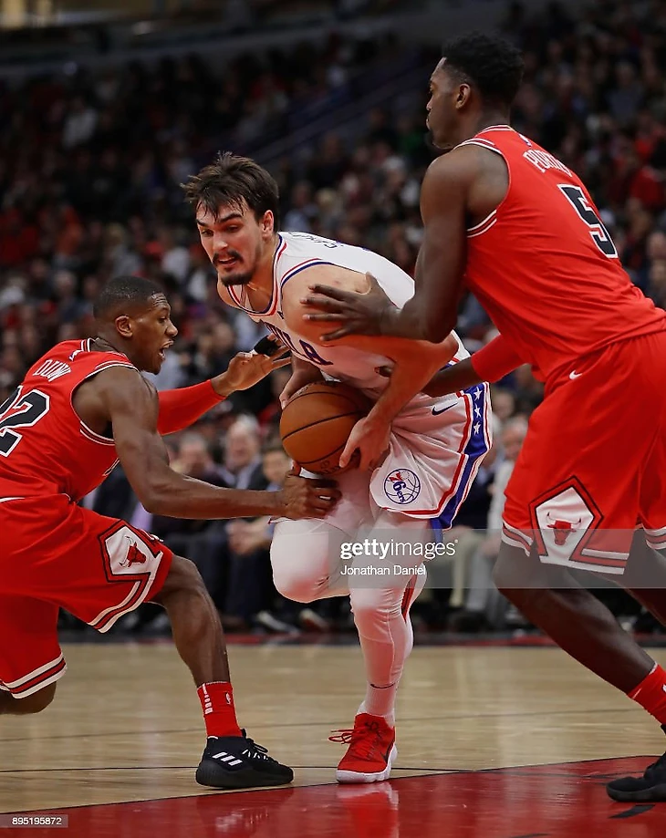 За 2 года Крис Данн прошёл путь от нового Криса Пола до баста и на полпути обратно к Крису Полу. Трансформация Данна ставит под сомнения в 743281-ый раз тренерские навыки Тибодо, но сейчас не об этом. Данн оказывается умеет защищаться и бросать, но меня поразила другая статистика: в то время, когда Данн на площадке, он отдаёт 1/3 всех передач при проценте использования 24,9. Данну будет 24 в этом сезоне и я не думаю, что он уже выйдет на уровень праймового Пола, но он не достиг своего потолка и стоит сказать, что разыгрывающий - это самая зависимая от партнёров позиция, он уже неплохой боллхендлер с хорошим видением, ему нужно серьёзно доработать бросок для становления звездой и реальной угрозой в атаке. Ты можешь быть сколько угодно элитным разыгрывающим, но без броска в 2018-ом ты будешь на вторых ролях (Рубио).
