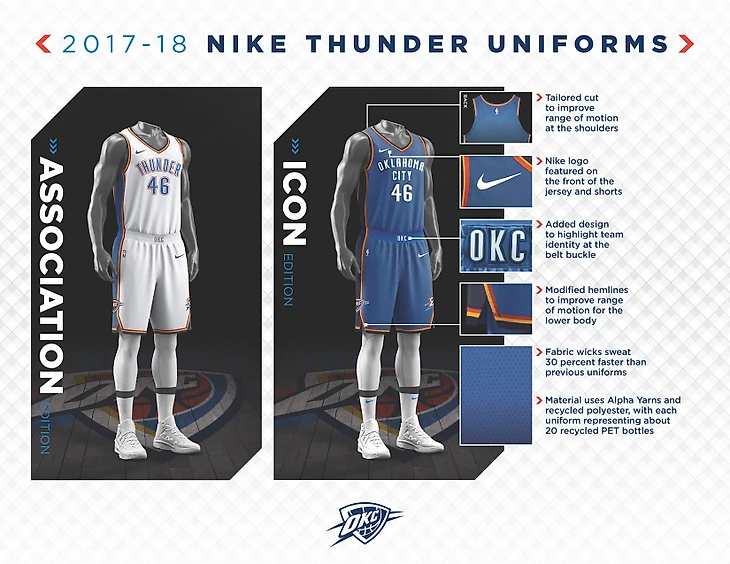 В прошлом году Nike стали официальным поставщиком формы для клубов НБА, заменив на этой позиции другой бренд с мировым именем - Adidas. Увы, для «Тандер» мало что поменялось в отношении основных форм - как и у многих клубов лиги, они остались практически такими же. Единственным более-менее заметным изменением стало появление надписи OKC в районе пояса. «До сих пор выглядит так же. До сих пор довольно плохо», - кратко резюмировал The Ringer.