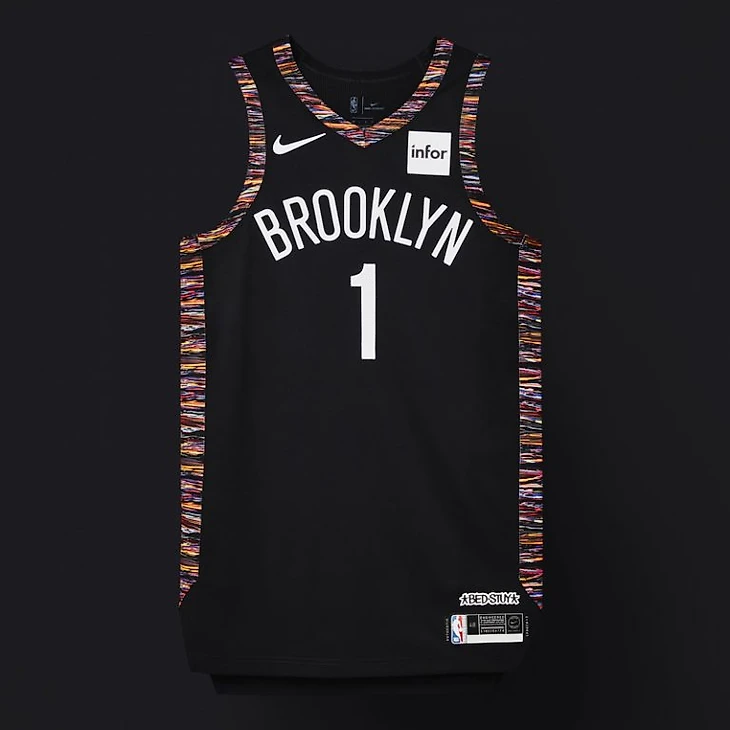 В целом новая майка выглядит почти так же как и гостевая, но все меняет окантовка рукавов, воротника и боковые вставки, которые выполнены в духе “бруклинского камо”. Такой яркий камуфляжный паттерн должен демонстрировать культурное разнообразие Бруклина. В комплекте с компрессионным бельем выполненном в таком же стиле выглядит просто потрясающе.