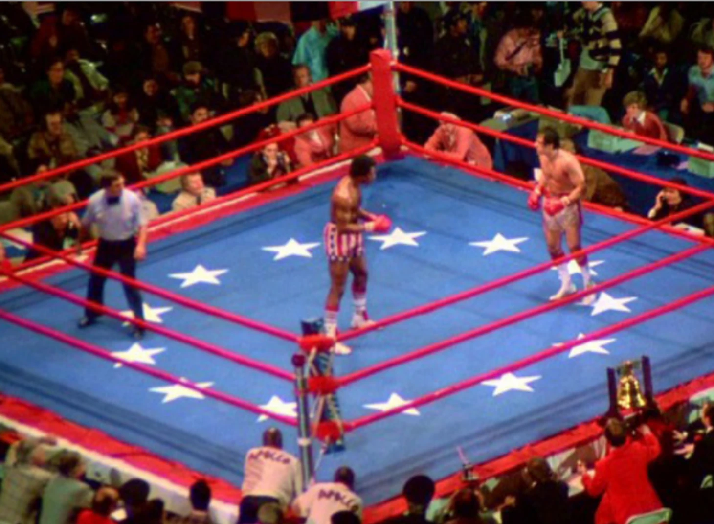 Основным цвета - красный, белый и синий - было отведено место на рукавах, воротнике и окантовке шорт, а главным цветом стал серый. Спортивный костюм именно такого цвета носили Рокки Бальбоа и Крид во время своих тренировок.