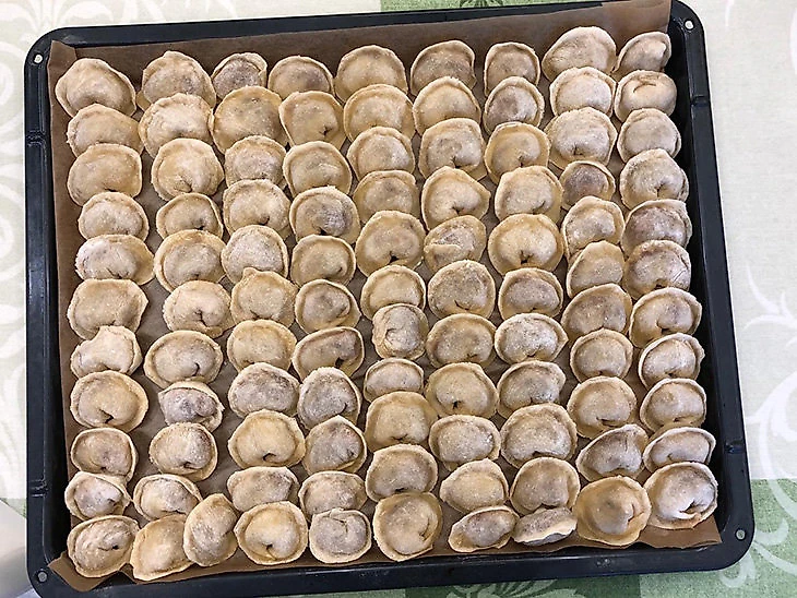 Пока мы были на прогулке налепил 400 пельменей. Приехали родители супруги Лиды, и был большой семейный воскресный обед. За раз все не съели.