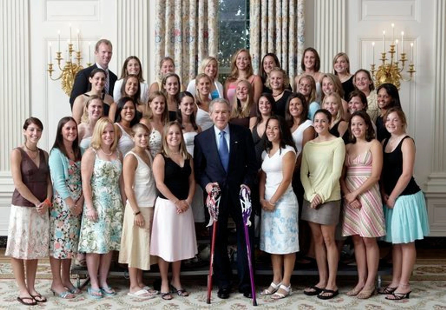 В 2005-м произошло и вовсе историческое событие. Команда Северо-западного университета по лакроссу пришла на встречу с президентом в шлепанцах.
