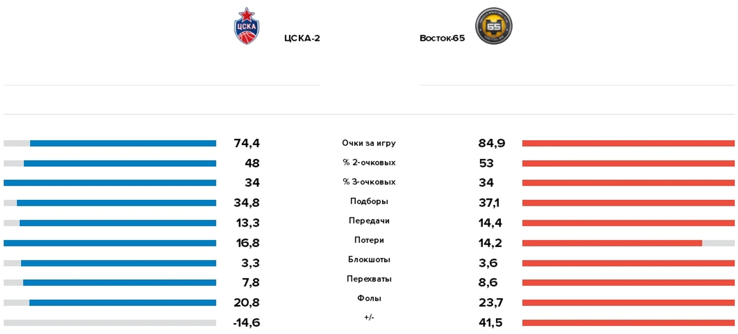 ЦСКА-2 уступает гостям практически по всем основным статистическим показателям. Равные цифры только по проценту трёхочковых попаданий + молодые армейцы меньше фолят. Однако до начала матча все эти цифры только на бумаге. Игра покажет, кто на данный момент лучше подготовлен.