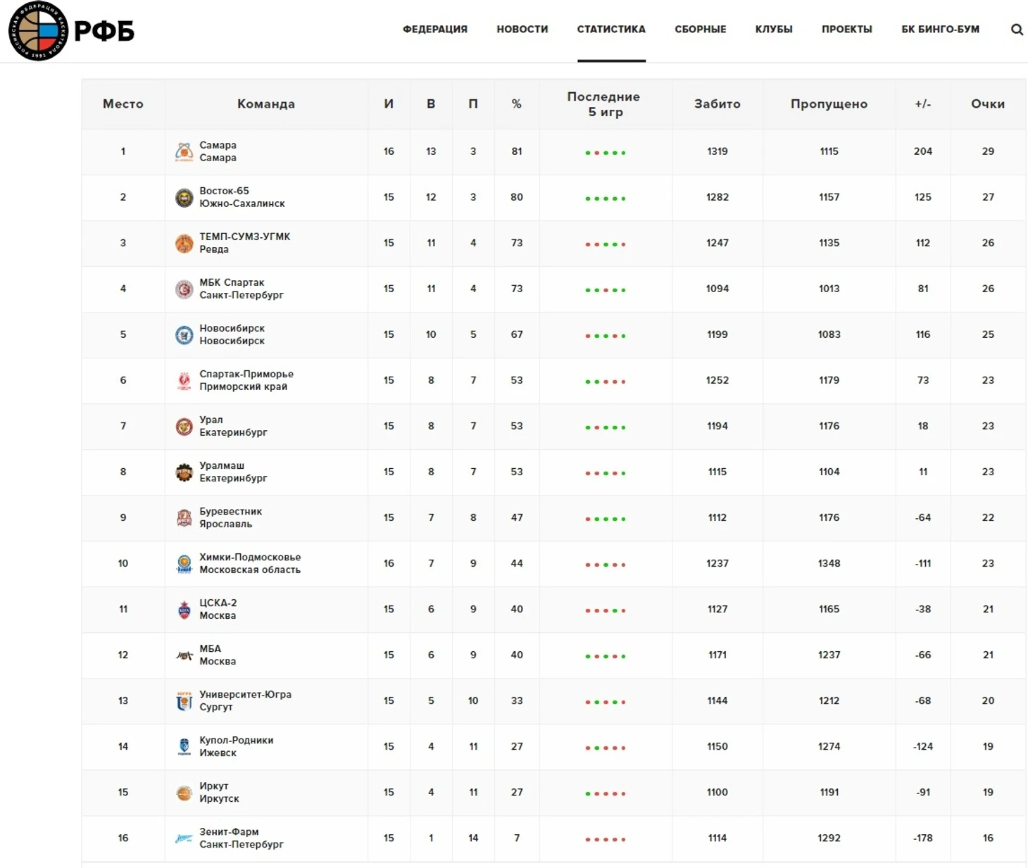 24 декабря были сыграны последние матчи первого круга регулярки. Некоторый дисбаланс в практически идеальную турнирную таблицу (давненько в Суперлиге не было такого ровного календаря) внес перенесенный с января на 26 декабря матч между «Химками-Подмосковье» и «Самарой». Все остальные же команды провели по 15 матчей.