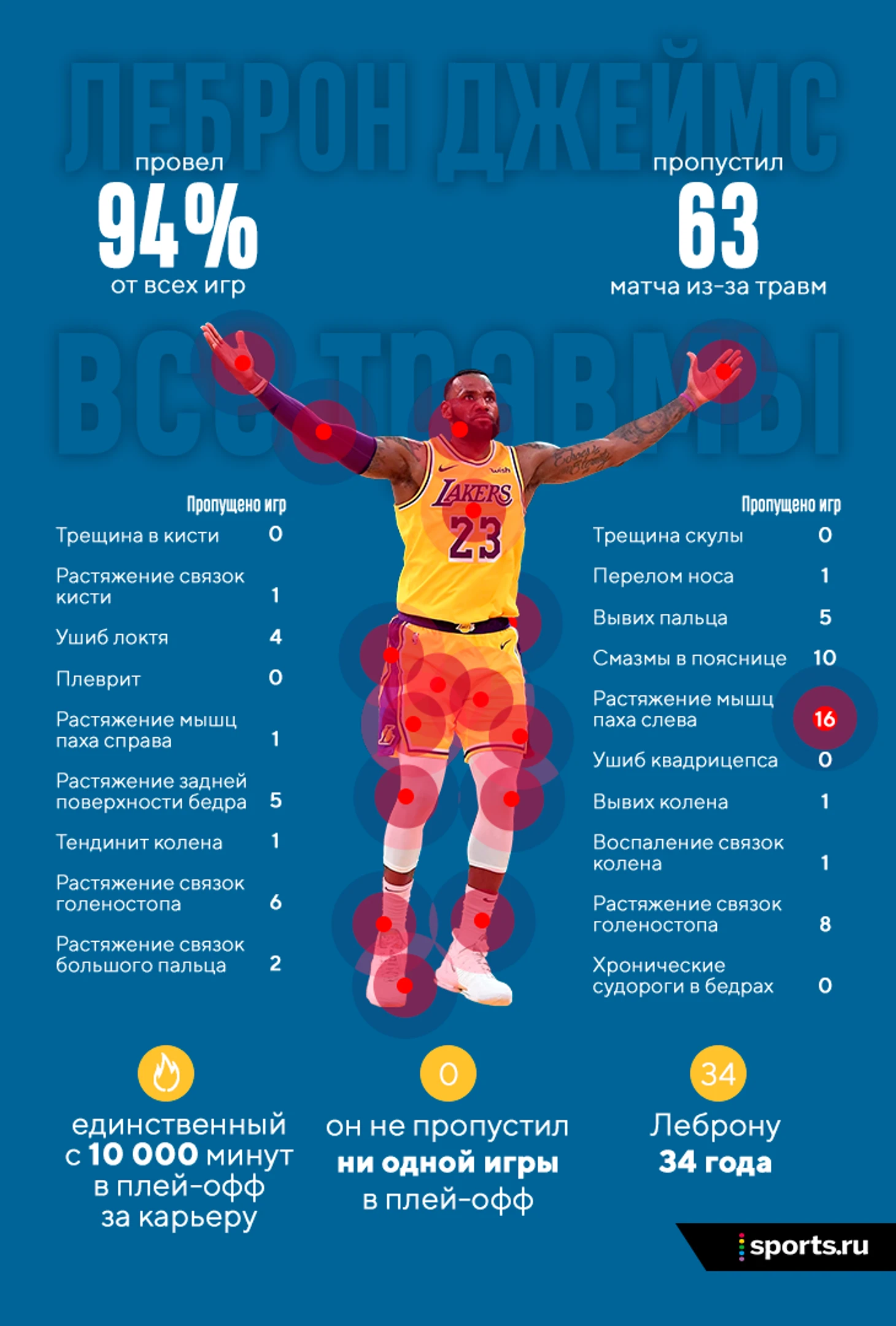Все травмы Джеймса – в одной картинке.