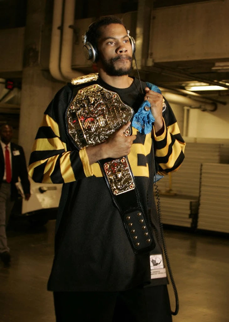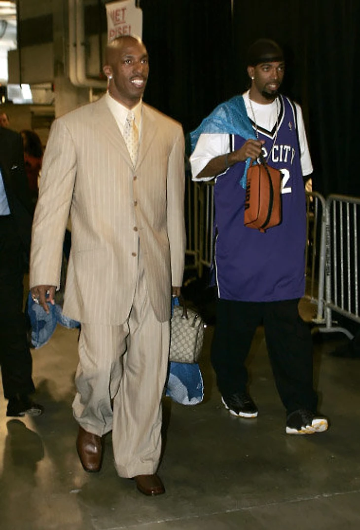 Форвард «Пистонс» Рашид Уоллес готовится к защите чемпионского титула в финале-2005, с чемпионским поясом в качестве акссессуара на одном плече и авоськой для грязного белья, в которой тогда носили с собой игровые кроссовки, – в другой. До введения дресс-кода в НБА остается всего несколько месяцев: