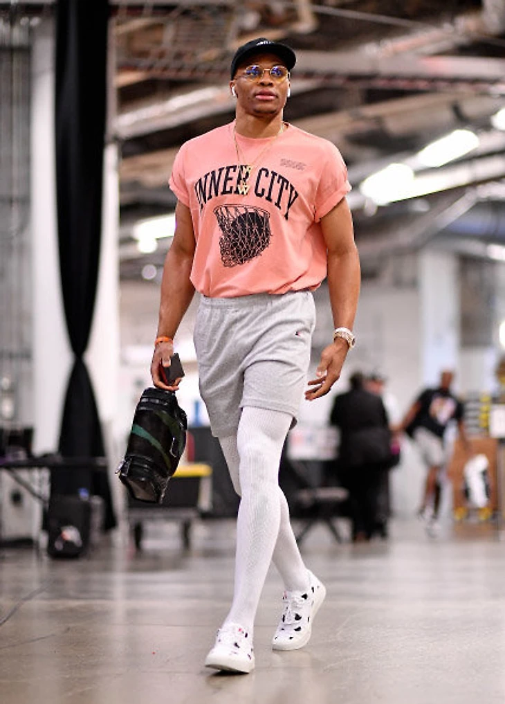 Расселл Уэстбрук превратил проход по подтрибунному тоннелю в самостоятельный ивент, который не относится к предстоящей игре и вообще баскетболу. Если для остальных звезд НБА одежда – лишь часть их образа «крутого спортсмена», то для Расса, наоборот, баскетбол – лишь часть образа.