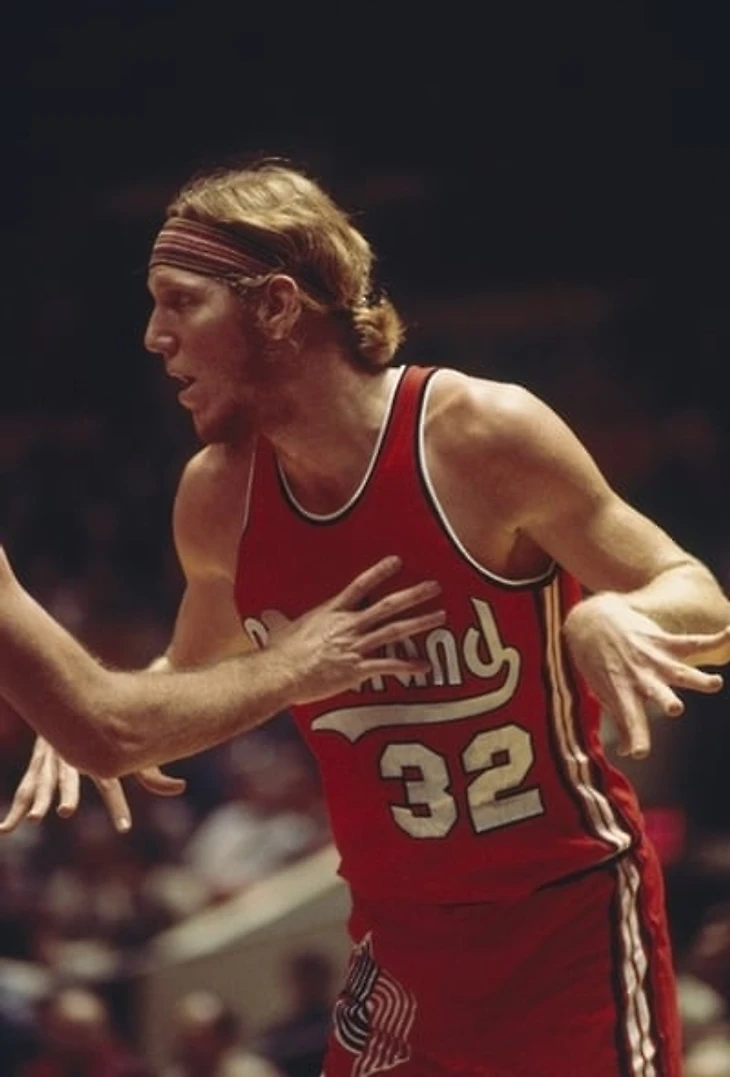 Первым белым, появившимся с головным убором на паркете, был великий центровой Билл Уолтон.