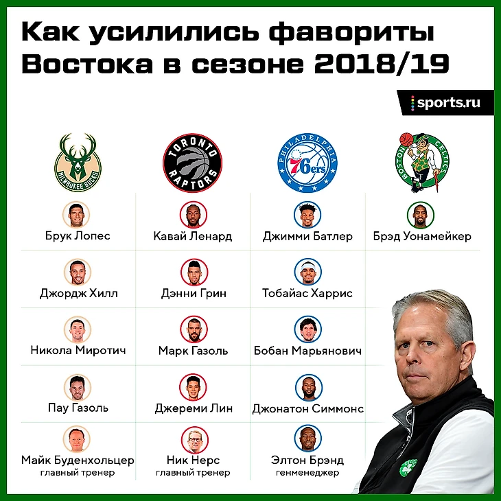 Восток готовится занять освобожденное Леброном место в финале НБА. В конференции растут новые суперзвезды – Яннис, Эмбиид, Симмонс; прибывают и переселенцы с Запада. Фавориты, которых отмечали перед стартом сезона, хорошо усилились в межсезонье, по ходу сезона, в дедлайн и на рынке выкупов.