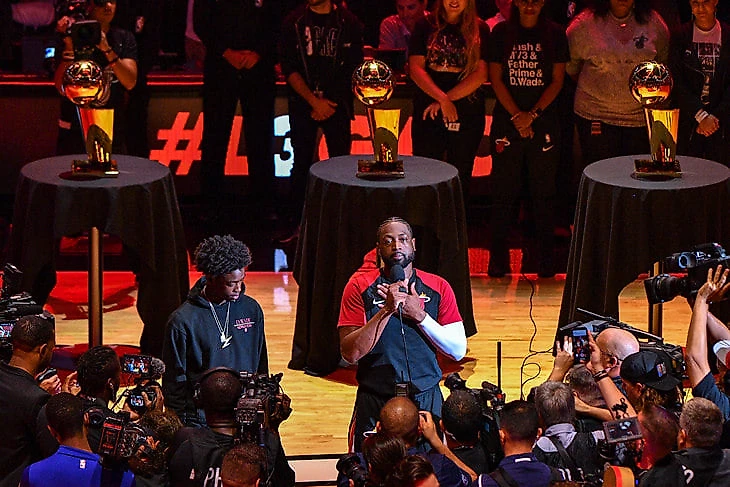 Уэйд-старший, конечно же, толкнул речь к болельщикам, поддерживавшим его все эти 16 лет (даже когда он играл за «Чикаго» или «Кливленд»):