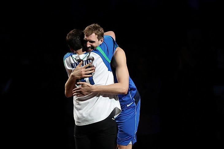 Праздник в честь Дирка Новицки был скромнее – но не потому, что в «Далласе» не чтят свою легенду, просто у немца стиль такой. Без поздравлений от Герхарда Шредера или прощальных роликов от Lowenbrau. Событие больше напоминало вечеринку, а не проводы на пенсию: