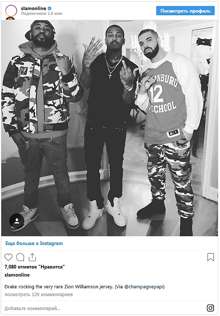 Примерно в это же время Дрейк запостил у себя в инстаграме фотографию, на которой он носит джерси Зайона: