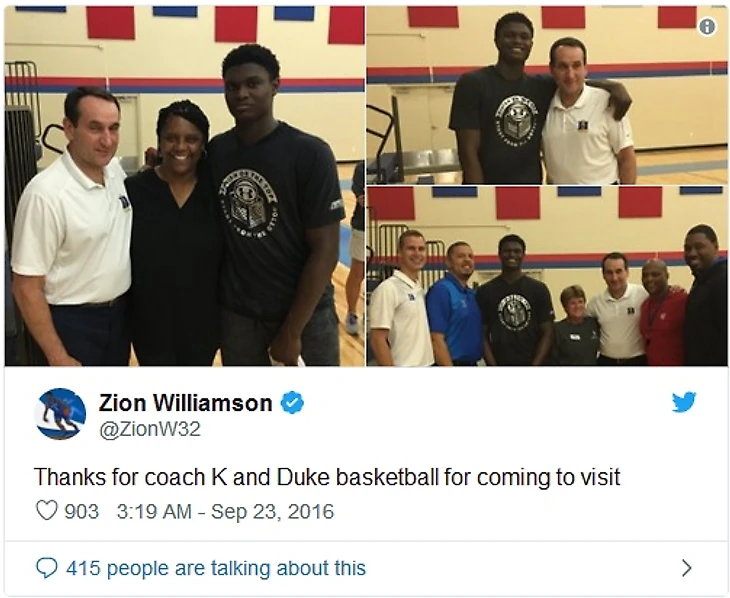 Для того чтобы понять, чего стоит Уильямсон, понадобилось три игры. После завершения этих игр все баскетбольные медиа США писали, что он станет следующей баскетбольной суперзвездой.
