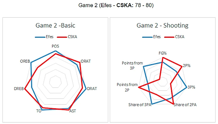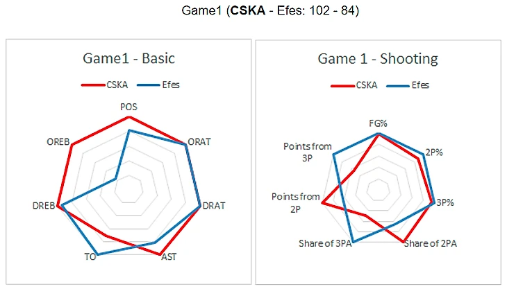 RunRepeat изучил статистику двух встреч между ЦСКА и «Анадолу Эфесом» и обратил внимание на то, что хотя сами матчи выдались совершенно разными, в обоих армейцы победили за счет одних и тех же факторов.