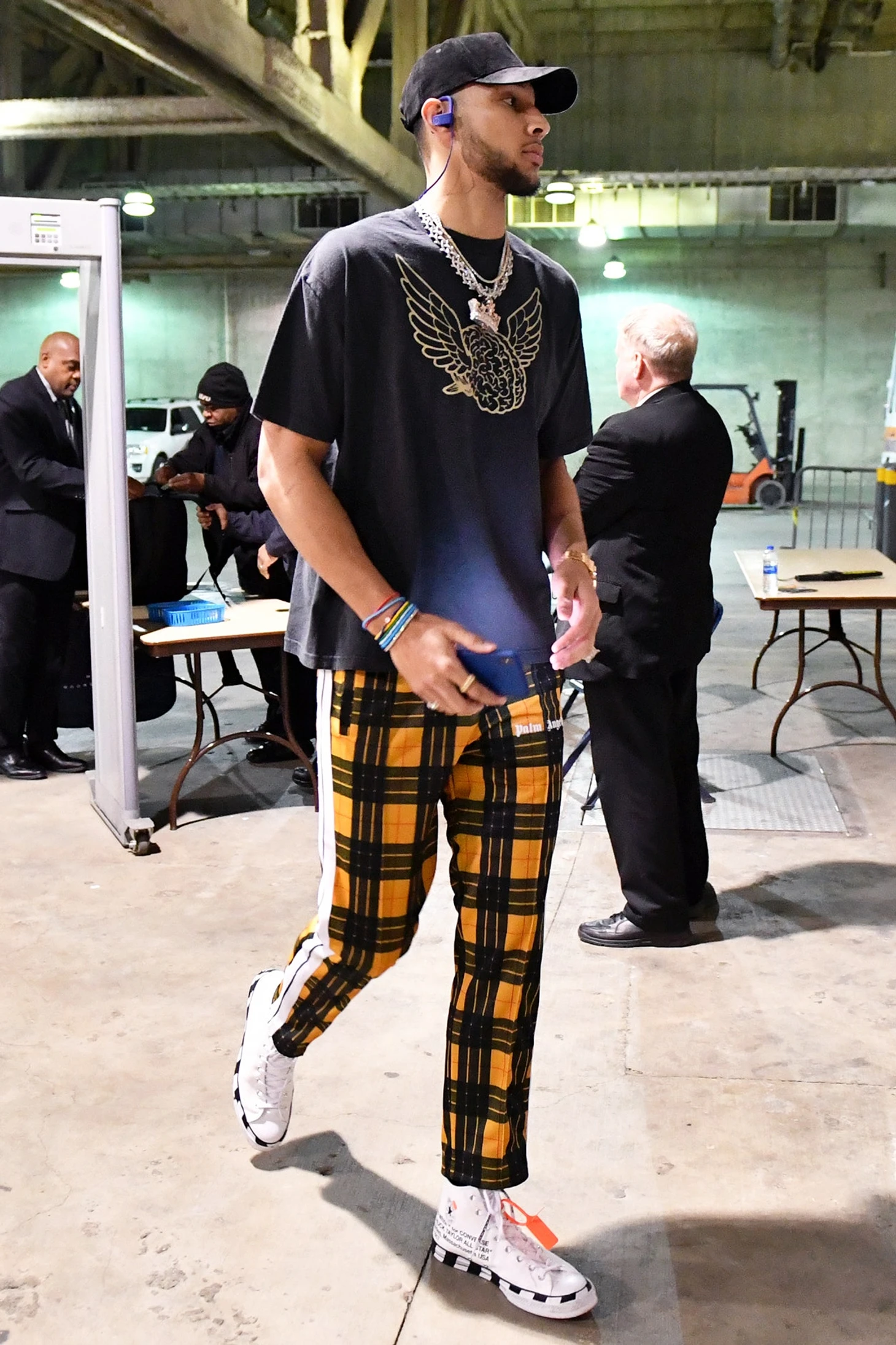 Яркие клетчатые штаны в сочетании с не менее яркими марками стиртвира — беспроигрышный вариант как для новичков, так и ветеранов НБА. Такой образ привлекает наше внимание, сохраняя при этом классический настрой.