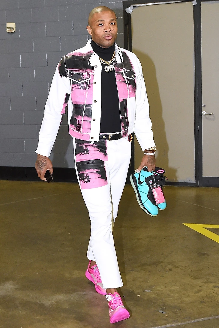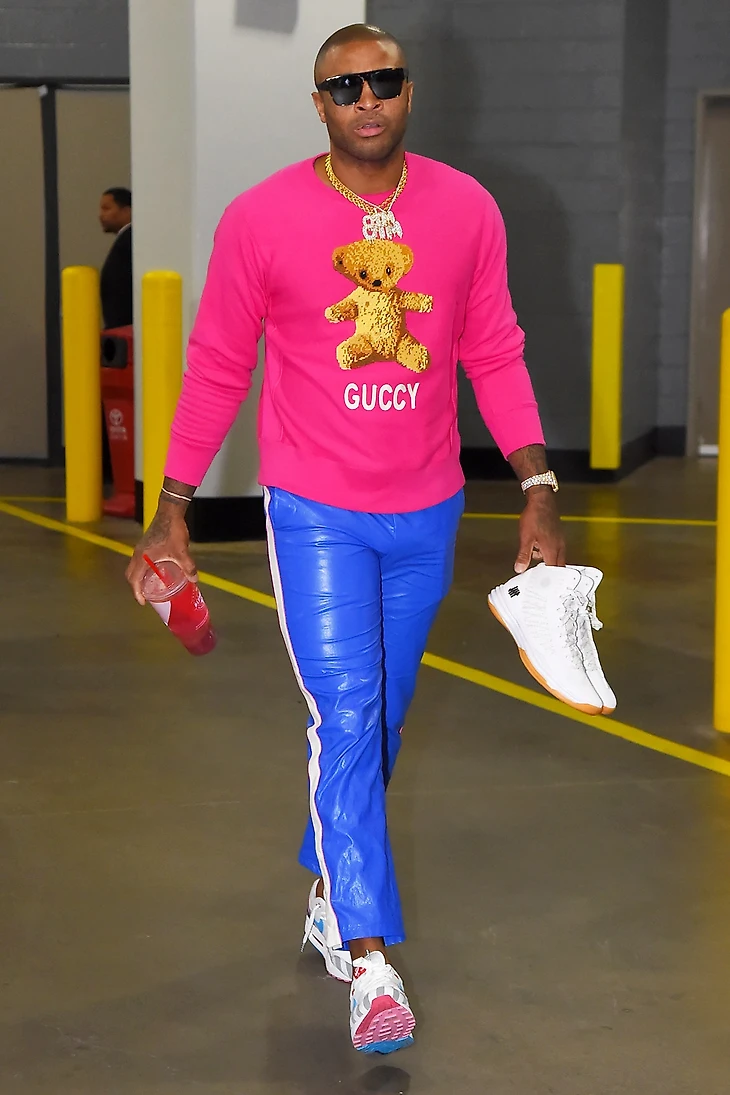 Игроки НБА привыкли носить спортивные костюмы, чем можно объяснить их любовь к полным комплектам одежды. Традиционные спортивные костюмы до сих пор в моде, но в этом сезоне мы видели комплекты, которые взрывали нам мозги своей яркостью и сумасшедшими принтами.
