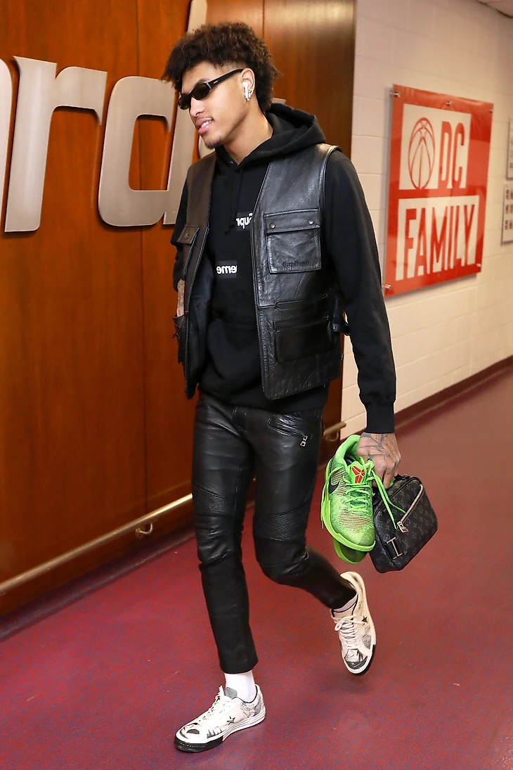 Кожа и спорт обычно не очень сочетаются, но в НБА про такие условности не знают. Однако такие эксперименты позволяют себе только самые смелые и отважные. Белые носки может нацепить каждый, а вот кожаный тотал-лук... что ж, попробуйте. Удачи.