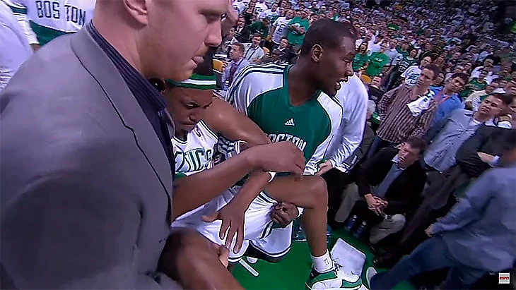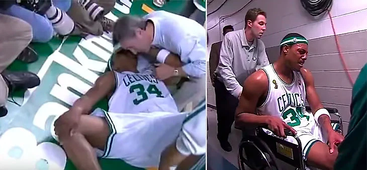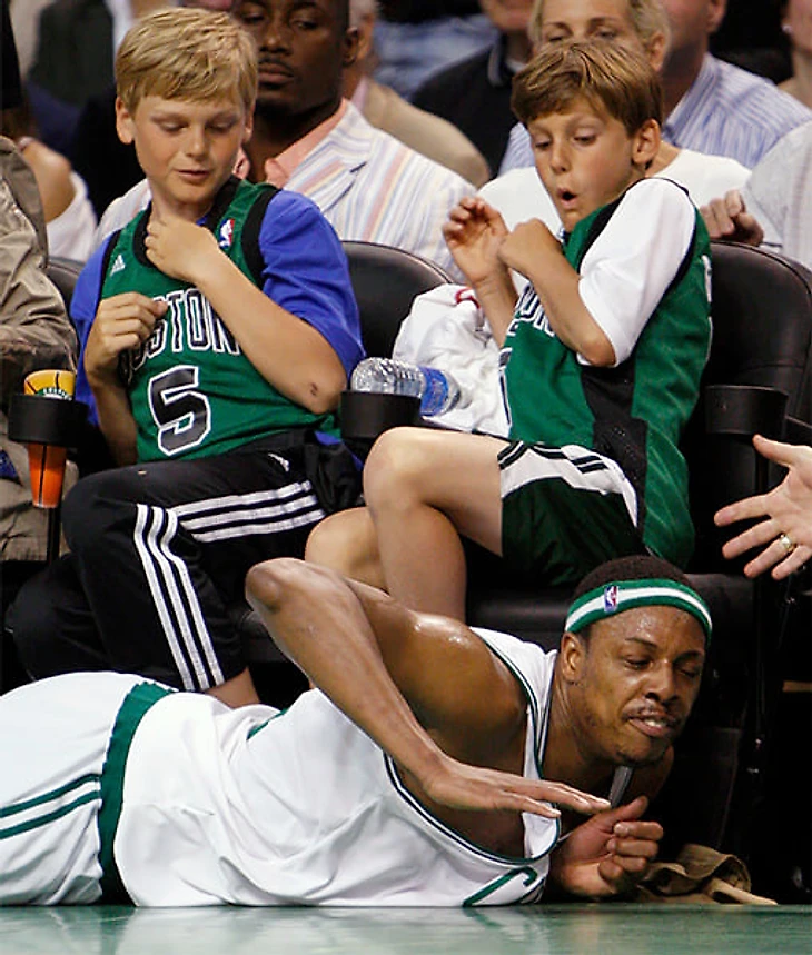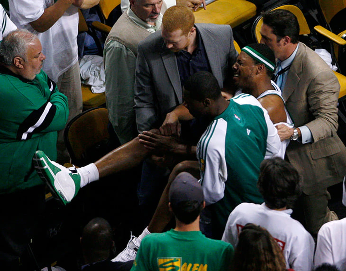 Финал 2008-го был определен одним ключевым моментом. В первом матче, который проходил в Бостоне, «Лейкерс» вели в счете (60:58) и контролировали игру. И тут лидер «Селтикс» Пол Пирс, пытаясь помешать Кобе, неуклюже упал под своим щитом и оказался на паркете – он показал явные страдания, так что ему потребовалась кресло-каталка, чтобы покинуть площадку. Команда «Бостона» остро почувствовала эту ситуацию, сплотилась, болельщики ее поддержали, и когда через несколько минут лидер вернулся и набрал 13 очков за 18 минут, «Селтикс» смели гостей за счет эмоционального порыва – 98:88. После игры Пирс говорил, что, когда пытался помешать Брайанту, почувствовал боль в колене и испугался, что порвал крестообразные связки. Согласно опубликованной тогда информации, он получил растяжение боковой связки.