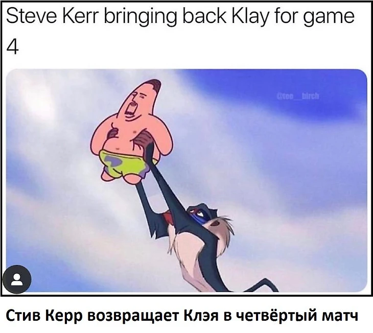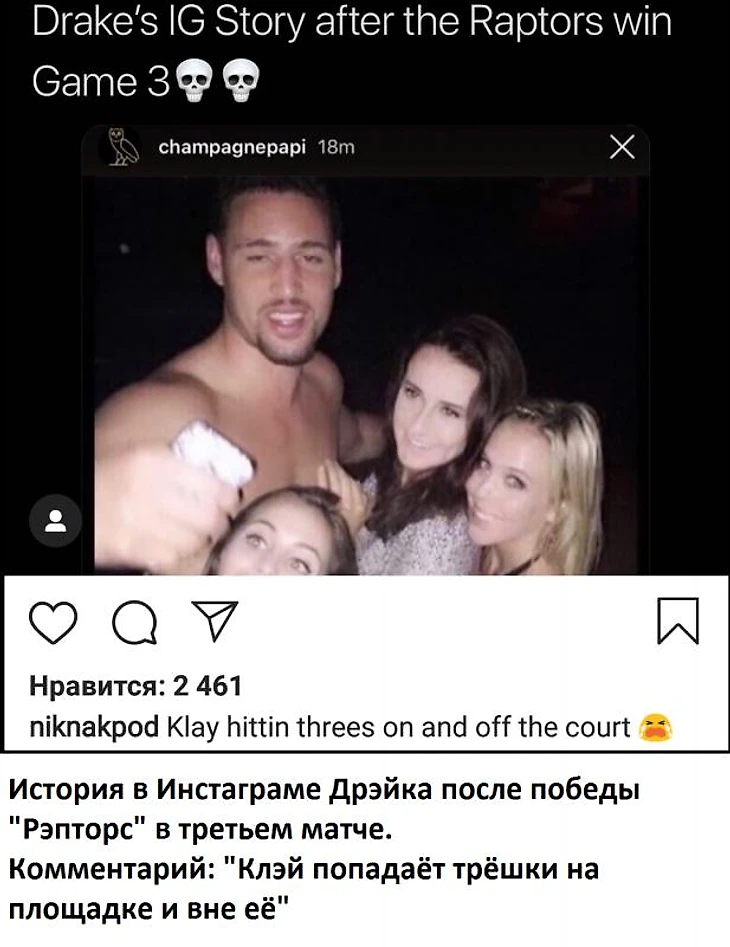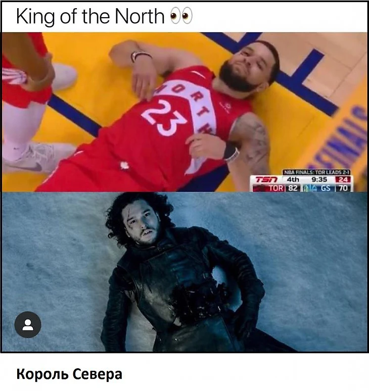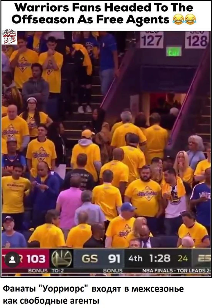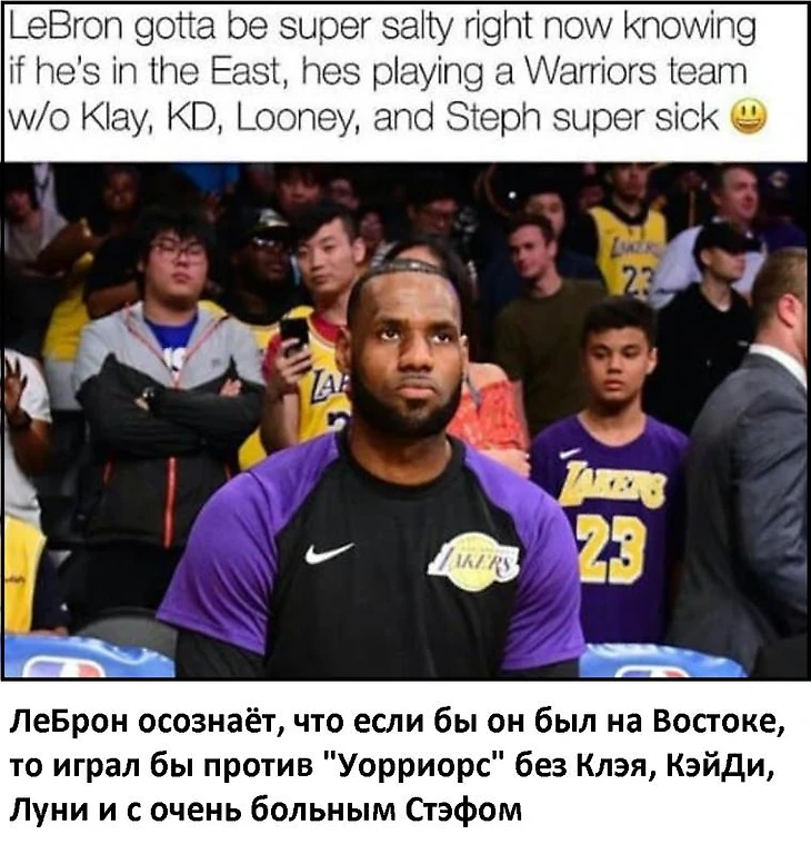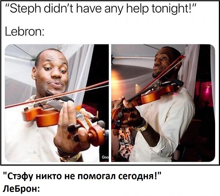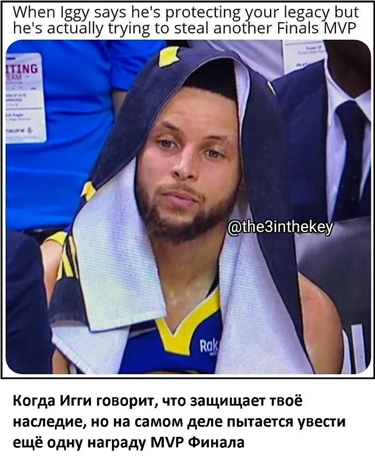 Например, мне понравились первый мем с Игги, полотенце, Леброн со скрипкой, вынос Томпсона и фанаты Уорриорс. Не понравилось - Уиггинс и яйца Томпсона (я бы их и не вставлял, но на фоне кучи вариаций мемов с лицом Кавая до и после любого события, яйца Томпсона показались глотком свежего воздуха. Мдя, фраза, конечно, вышла... :))