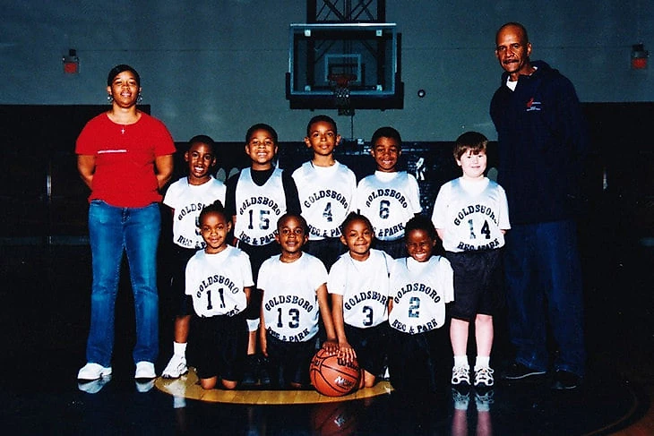 Более того, именно отец впервые дал мне в руки баскетбольный мяч. Он играл за сборную университета Северная Каролина Сентрал, обожал баскетбол и довольно рано познакомил меня с ним. Как только я научился вести мяч, он потащил меня бросать по самодельному кольцу. Параллельно рассказывал байки про то, как забивал по 40 за игру или ставил через противников.