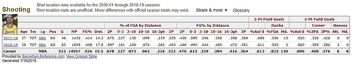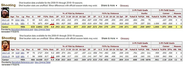 Это сравнительная таблица бросков МакГи и Дэвиса за 2 последних года. Я не собираюсь чморить МакГи, просто хочу показать насколько Дэвис будет эффективнее в связке с Леброном. Энтони опасен на любых дистанций + умеет отдать пас открытому игроку (карьер-хай 3,9 передач в прошлом сезоне, 2 ассиста в среднем за карьеру, у МакГи ни разу не было более 1 передачи за игру). Передачи от большого при ПНР или Леброна на открытого игрока станут более ценными – из-за игроков, которых подписали летом. Во-первых, это Дэнни Грин, который в прошлом сезоне забивал 50% трех с углов.