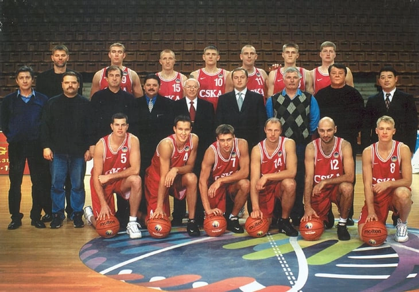 ЦСКА в сезоне-2000/01. Президент клуба Александр Гомельский, тренеры Валерий Тихоненко и Олег Ким, юный Андрей Кириленко, Игорь Куделин и Ко