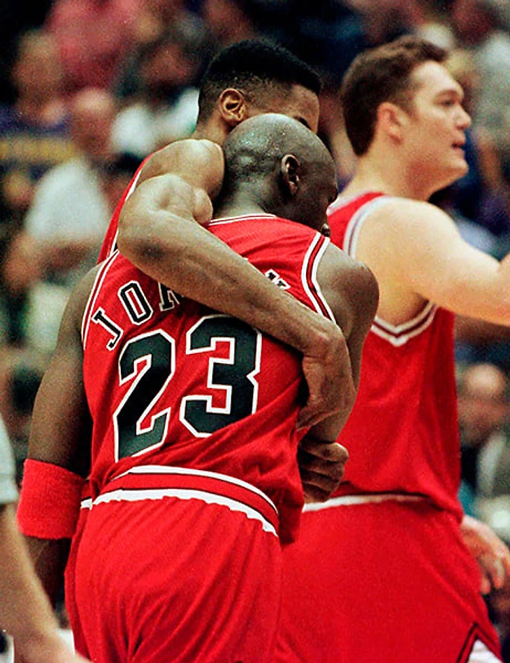 Все помнят знаменитую «Flu Game» и ее концовку, когда обессиленный Майкл рухнул в объятия Скотти.
