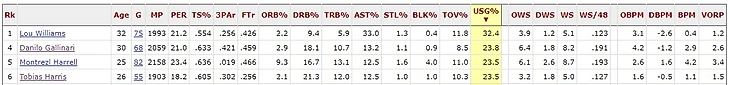 Здесь все гораздо лучше, чем у соседей по Стейплс-центру. Док Риверс построил классную команду, которая даже немного покусала в плей-офф непроснувшихся ГСВ. Но иногда модернизировать уже работающие схемы труднее, чем наиграть новые. Ведь нужно максимально органично внедрить две суперзвезды Кавая и Джорджа в уже хорошо работающую (играющую) команду. При чем и Кавая, и Джордж активно задействовали в Торонто и Оклахоме (usg 30,3% и 29,5% соответственно). В Клипперс больше всего задействовали эффективную связку Лу+Харрелл (32,4%+23,5%).