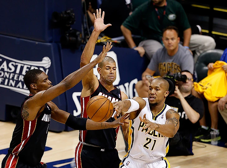 На тот момент, как в регулярке, так и в плей-офф, 6-11-футовый Бош играл в основном на позиции тяжелого форварда. В том сезоне он отыграл суммарно 2,174 минуты, проведя 1,901 из них (87,4%) в паре с Джоэлом Энтони/Адонисом Хаслемом/Ронни Тюриафом/Декстером Питтманом или Эдди Карри. Однако, когда Бош вылетел на всю серию с «Пейсерс» и на первые 4 игры последующего финала Восточной конференции против «Бостона», тренер «Хит» Эрик Споэльстра поставил в стартовый состав 6-8-футового Шейна Баттье.