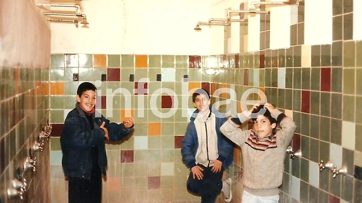 На фото Луис Скола (мальчик в темно-синем жакете) с двумя товарищами по команде в школьной раздевалке в 1988 году.