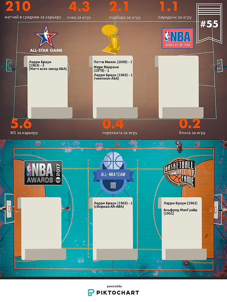 Сегодня у нас в рубрике человек, нет, даже Человек, который поиграл только в АБА и сменил в ней 5 команд. Причем 3 из 5 – это одна и та же команда, поменявшая свое название. Известен он, конечно, не столько своей игровой карьерой, но к этому вопросу мы еще вернемся более подробно. Впрочем, Ларри Браун был достаточно успешен и в качестве игрока – три раза съездил на Матч всех звезд АБА, где даже был MVP в 1968 году, попал во вторую сборную All-ABA в том же году. А еще – стал чемпионом АБА в 1969 году. Что было дальше? Смотрим ниже, но сначала поговорим о школьниках.