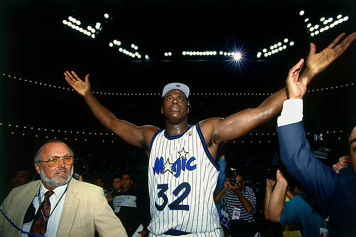 Конечно, все мы и так прекрасно знаем, каким был Шак баскетболистом. МОЩНЫМ. В свои 22 года Шакил был уже самым доминирующим игроком, находившимся на баскетбольной площадке. «Мэджик» выбрали Шака под первым номером Драфта-1992 и сразу же подписали с ним 7-летний контракт на 40 млн. долларов, для новобранцев тех лет это была рекордная сумма. И с ходу, с первой же игры в НБА, Шакил стал одним из лидеров «Орландо», став в итоге Новичком года и в первом же сезоне попал на Матч Всех Звезд (сейчас такое нереально, вспомните Луку Дончича). В сезоне 1994-95 Шакил проводил свой третий сезон в Лиге, набирая в среднем дабл-дабл: 29.3 очка и 11.4 подбора. Кстати, про появление Шака в «Мэджик» существует одна интересная теория. «Мэджик» начали выступать в НБА в 1989 году, однако к 1991 году команда уже была на грани закрытия или переезда, франшизу даже выставили на продажу. И вот представители теории заговора считают, что первый пик Драфта-92 достался команде не просто так, а для того, чтобы в команду попал Шак, который должен был поднять ТВ рейтинги и популярность франшизы. Не знаю, правдивая это теория или нет, но Шак справился с популяризацией франшизы.